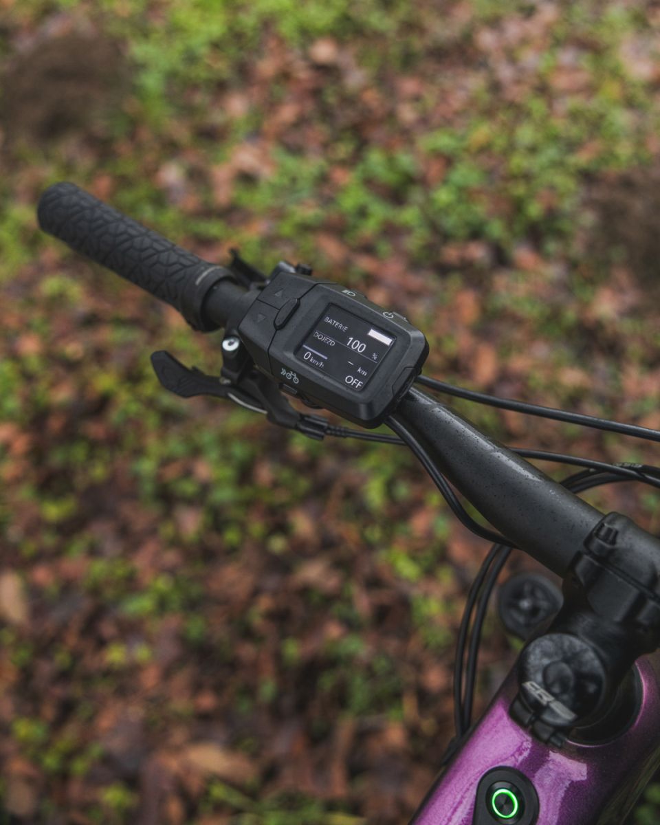 The side colour display is relatively small and compact and is located to the left of the handlebar grip. Its screen has a diagonal of about 4.5 cm. It offers a clear and crisp overview of all the necessary driving information. The display is also connected to Bluetooth™, which allows the use of smartphone apps such as "Komoot" and "Strava".