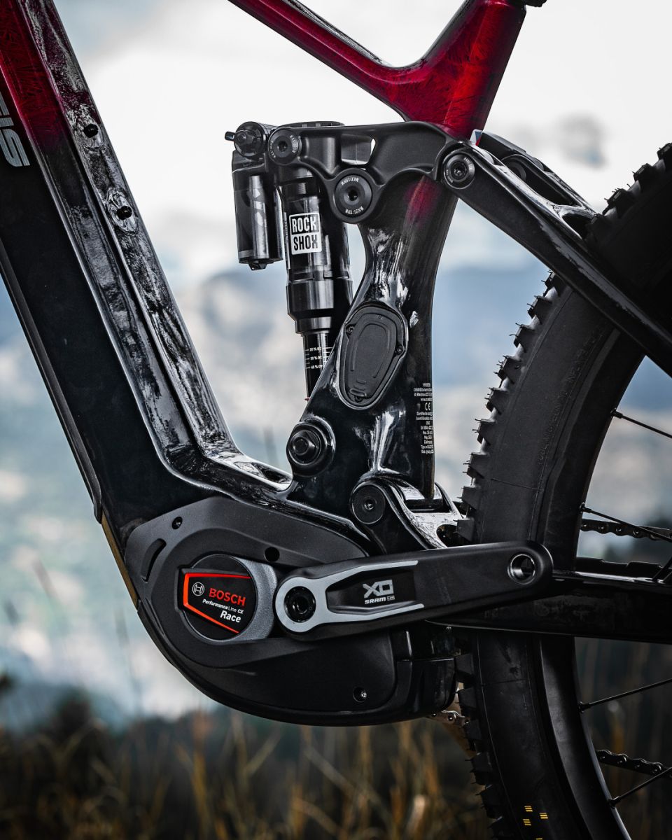 Top of the range e-bike for 2025. An unbeatable combination of state-of-the-art technology and high-end components. Carbon frame, BOSCH Performance Line CX Race Edition motor, 750 Wh battery and a range of up to 180 km. Premium components such as ROCKSHOX ZEB ULTIMATE fork, SRAM Maven brakes and SRAM XX Eagle AXS derailleur.